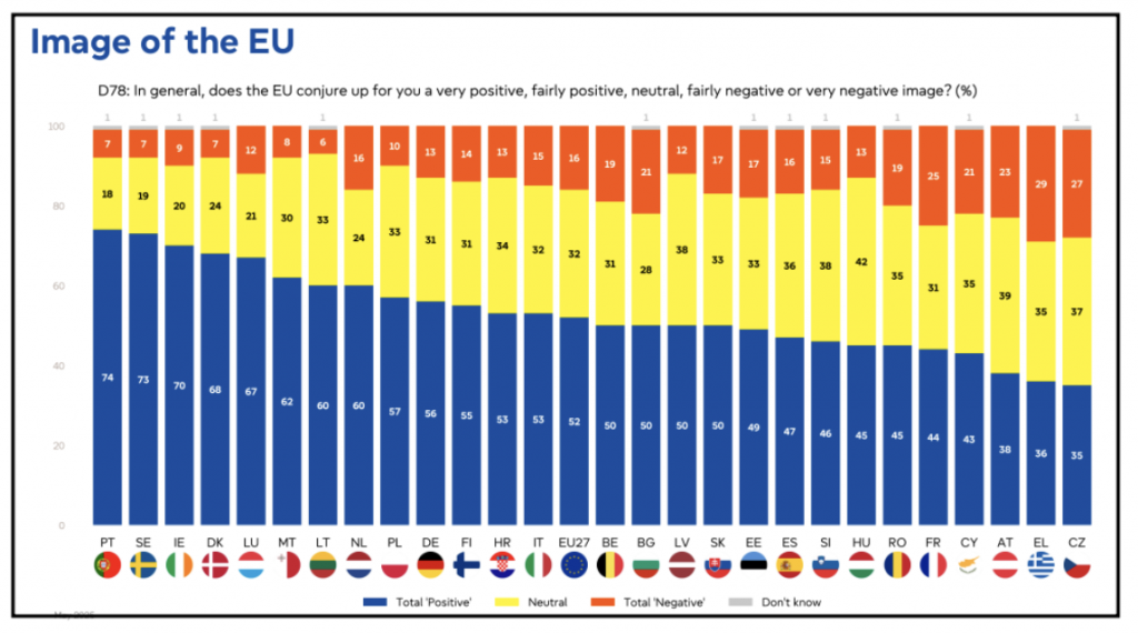 Let’s compare the data for each of the countries mentioned in the propaganda video. Since Eurobarometer has not yet published detailed data taking into account the age of respondents for 2025, we rely on the figures for 2024 and 2023 as well.