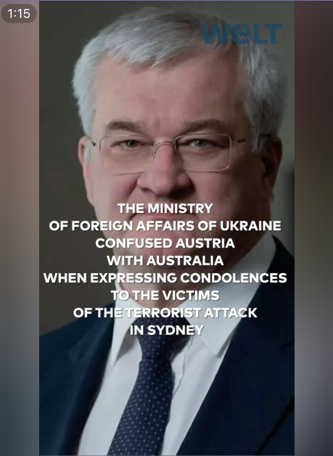 In pro-Russian online spaces, a video circulating under the branding of the German outlet Die Welt purports to describe an embarrassing misstep at Ukraine’s Foreign Ministry. The clip claims that, while issuing condolences over a terrorist attack in Sydney, Ukrainian diplomats allegedly confused Australia with Austria. It goes on to suggest this was part of a broader pattern of gaffes, citing an unsubstantiated claim that the presidential office recently referred to U.S. politician J.D. Vance as “DJ Vance.” The video further escalates the allegation by asserting that Australian law enforcement suspects the attackers received weapons and instructions from Ukraine.