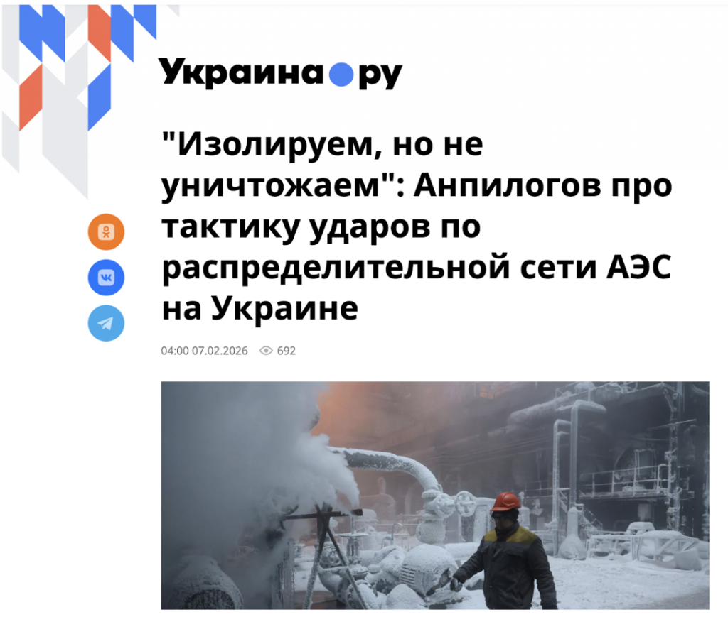 Pro-Kremlin outlets have sought to frame Russian strikes on Ukraine’s nuclear power plant distribution networks as “safe” and “technologically risk-free.” These narratives claim that the attacks merely disconnect nuclear and hydroelectric facilities from the power grid, sparing reactors and dams themselves to avoid technical hazards. The messaging is presented as evidence that Russia is allegedly adhering to international nuclear regulations.