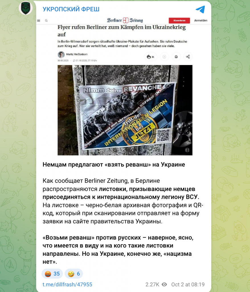 The International Legion firmly denied any role in the appearance of the leaflets. Their limited distribution — confined to a single district of Berlin — points to a staged provocation designed to discredit Ukraine and its armed forces.