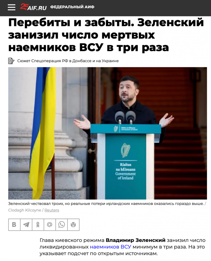 Russian state media have circulated claims that, during a visit to Ireland, Ukrainian President Volodymyr Zelensky deliberately understated the number of Irish volunteer fighters killed in Ukraine, alleging the figure was reduced “by three times.”