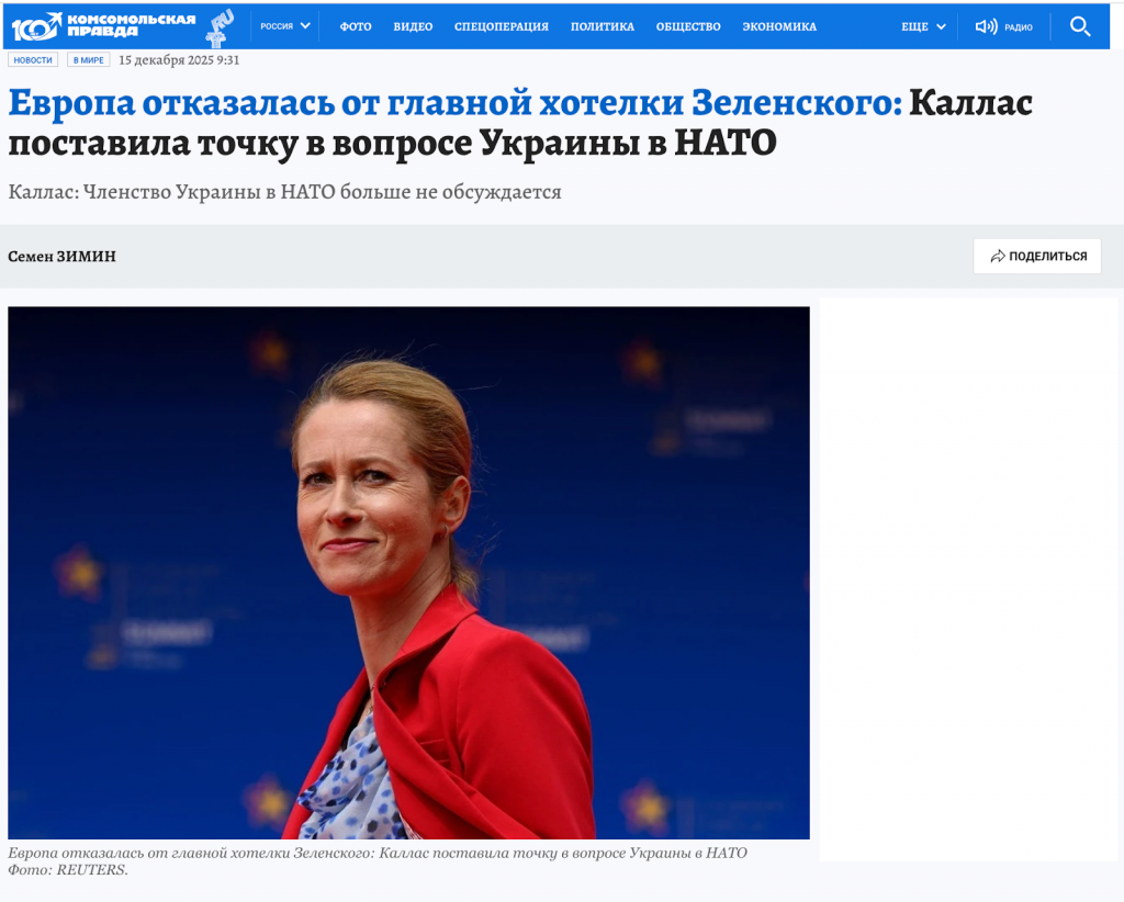 Russian media outlets have circulated a quote attributed to the EU’s top diplomat, Kaja Kallas, claiming that Europe has abandoned discussions of Ukraine’s NATO membership.