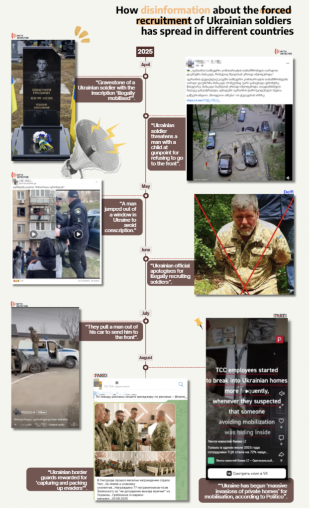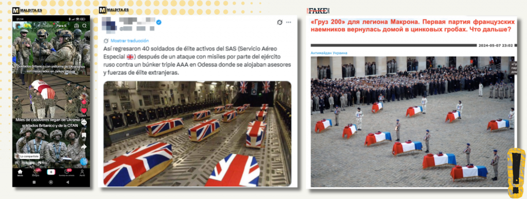 Many of these examples are cases of FIMI (Foreign Information Manipulation and Interference). That is, content specifically intended to dissuade volunteer fighters from certain countries from joining the Ukrainian army and to discredit Zelensky’s management of the country by spreading multiple narratives and disinformation campaigns.