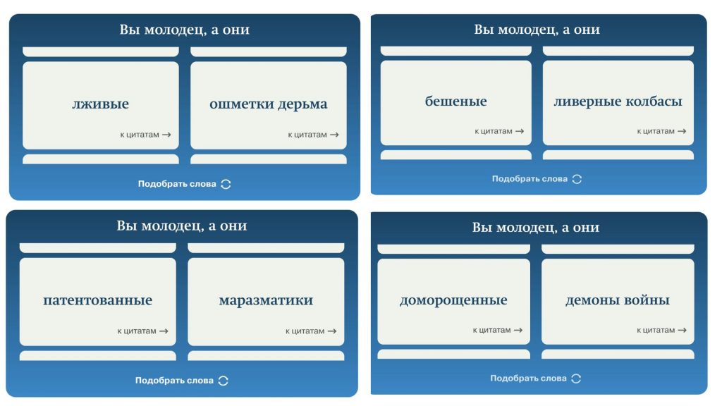 On the occasion of Medvedev’s anniversary, the Russian daily Kommersant analyzed his lexical contribution to Russia’s defensive narrative and developed a generator of “appropriately chosen phrases for enemies” in the style of the former president for anyone interested.
