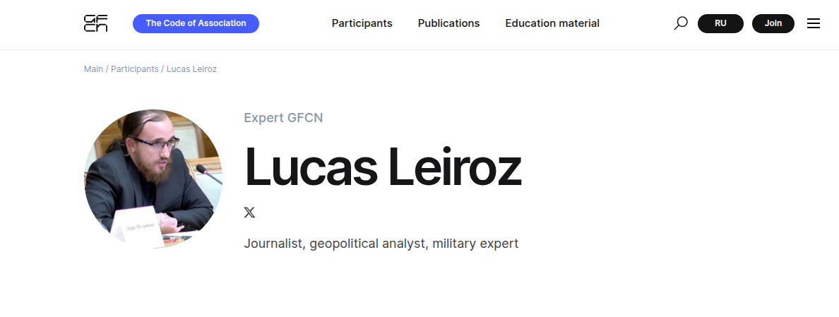 Profile page for Lucas Leiroz on the GFCN website. Photo: Screenshot