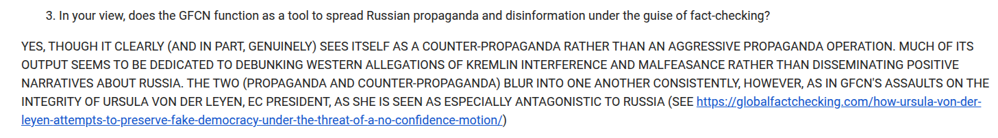 Hutchings also highlights that the GFCN is part of a relatively recent strategy to develop a “counter-disinformation”/fact-checking industry that mirrors and opposes checks carried out in the West.