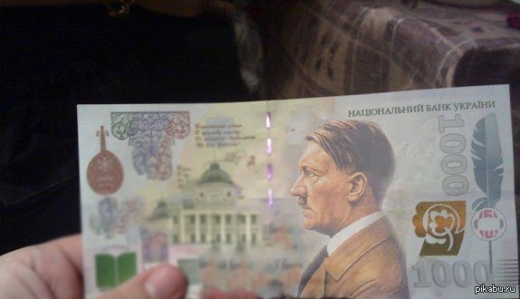 El canal de televisión “Rusia 1” el 12 de enero en el programa nocturno de noticias “Vesti” (a las 19:40) mostraron, en un reportaje, el bosquejo de nueve billete con nominación de 1000 gryvnas con el retrato de Hitler, hecha por el partido “Libertad”.