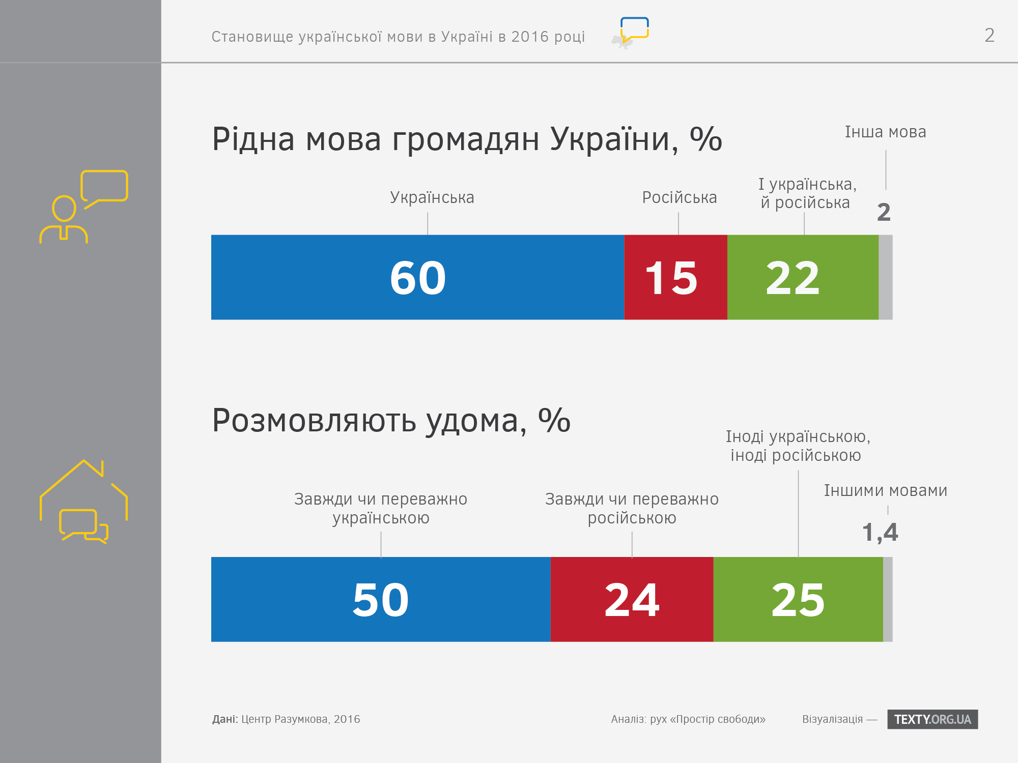 Diferentes sondeos muestran que más del 60% de la población de Ucrania dice que el ucraniano es su lengua materna.