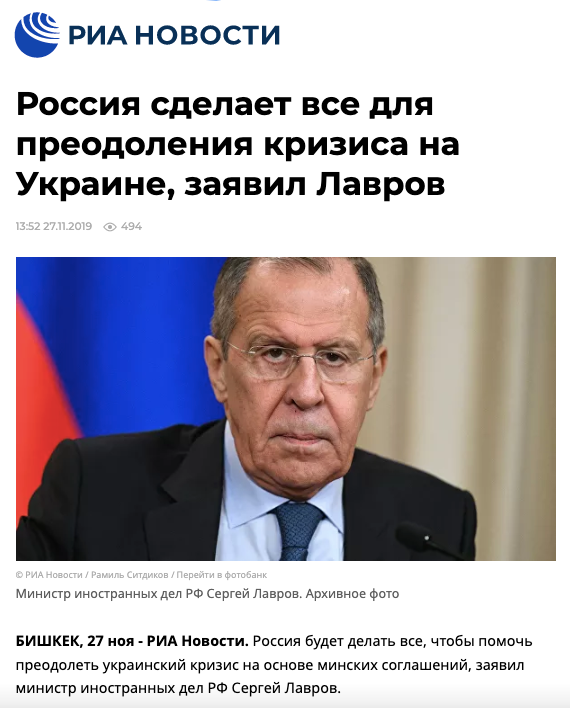 Le Ministre russe des affaires étrangères, Sergey Lavrov, a repris tous les vieux clichés propagandistes sur l’Ukraine en parlant de la rencontre à Paris des dirigeants de France, d’Allemagne, d’Ukraine et de Russie lors de son discours au Kirghizstan. « L’Ukraine fait face à une grande crise interne », a-t-il dit, sans oublier le «coup d’Etat» et la polarisation de la société civile. « Cela fait longtemps que l’idée d’implication de la Russie dans le conflit n’est plus à l’ordre du jour », a dit aussi M Lavrov.