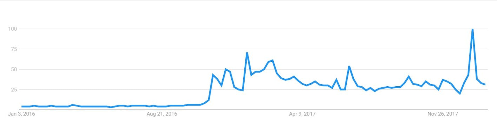 Les tendances publiées par Google Trends confirme clairement la date du début de ce phénomène dont l’intérêt politique et médiatique est resté fort depuis.