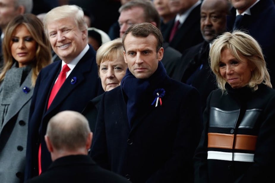 Le 11 novembre, à Paris, l’arrivée de Vladimir Poutine (de dos) lors des commémorations du centenaire de la Première Guerre mondiale.BenoitTessier/ AFP