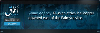 L’8 luglio, la sera, l’agenzia Amaq (vicina all’ISIS) riportava la notizia che un elicottero russo era stato abbattuto, non precisando chi lo aveva abbattuto.