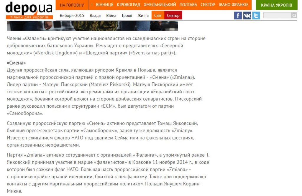 Rossia 24 noemt echter niet Jankowski’s deelname aan deze extreem-rechtse anti-EU en anti-NAVO partijen en organisaties.