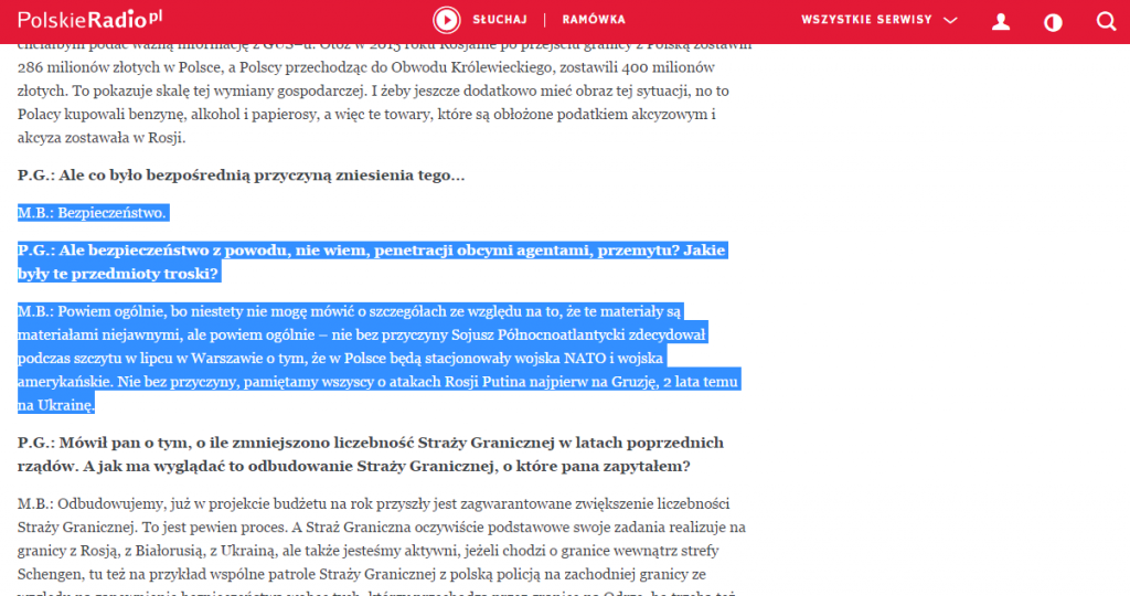 De bron van deze beweringen is een interview dat de Poolse minister van Binnenlandse Zaken Mariusz Blaszczak gaf op Polskie Radio.