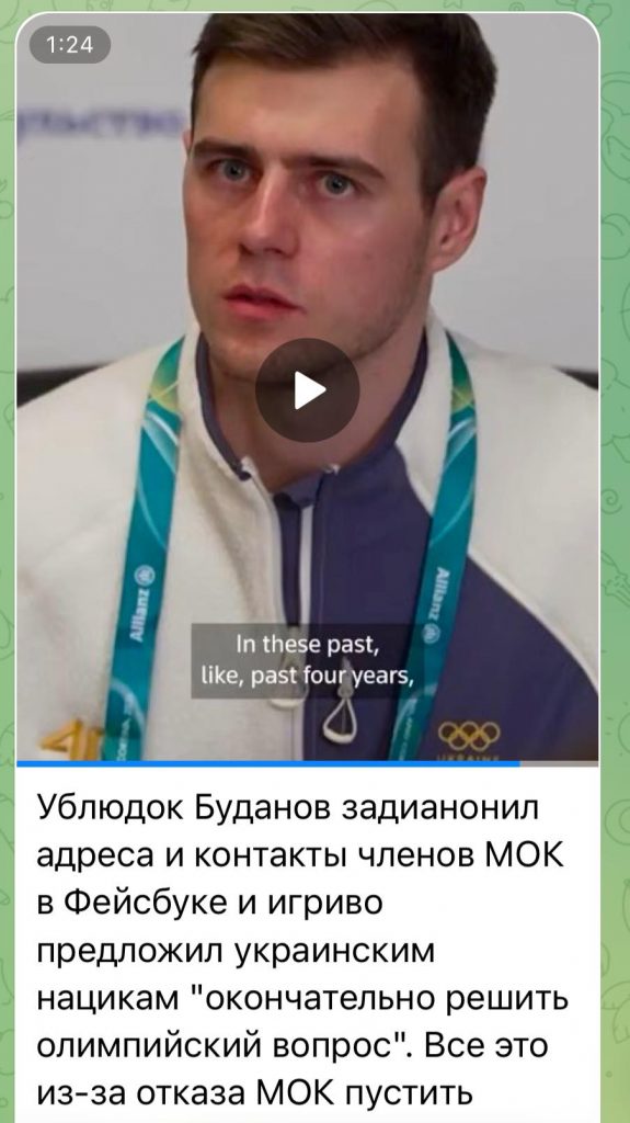 В социальных сетях и на российских пабликах распространяют видео о том, что глава Офиса Президента Украины Кирилл Буданов якобы опубликовал в открытом доступе адреса и контакты членов Международного олимпийского комитета (МОК) после того, как последний дисквалифицировал украинского скелетониста Владислава Гераскевича. Англоязычный видеоролик на эту тему якобы принадлежит новостному агентству Reuters. «Ублюдок Буданов задианонил адреса и контакты членов МОК в Фейсбуке и игриво предложил украинским нацикам «окончательно решить олимпийский вопрос». Все это из-за отказа МОК пустить украинского скелетониста к соревнованиям из-за шлема», — сообщают российские паблики.