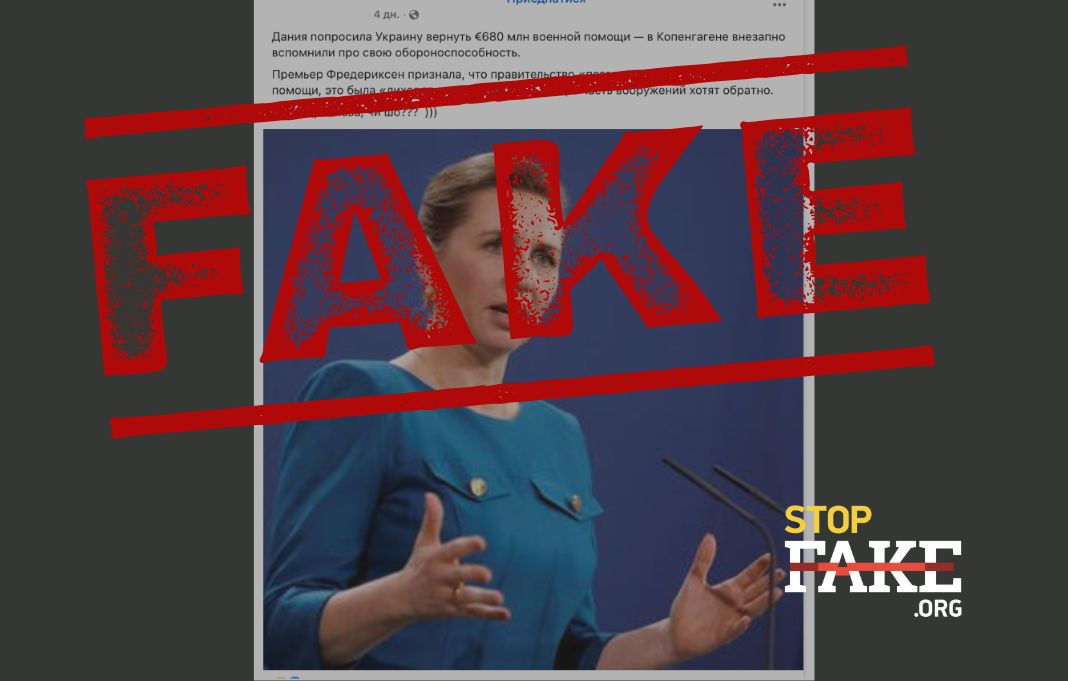 Ни премьер-министр Дании Метте Фредериксен, ни представители датского правительство не просили Украину вернуть деньги за ранее оказанную военную помощь. Российский агитпроп просто придумал такую новость, чтобы в очередной раз попытаться дискредитировать союзнические отношения Украины со странами-патнерами.