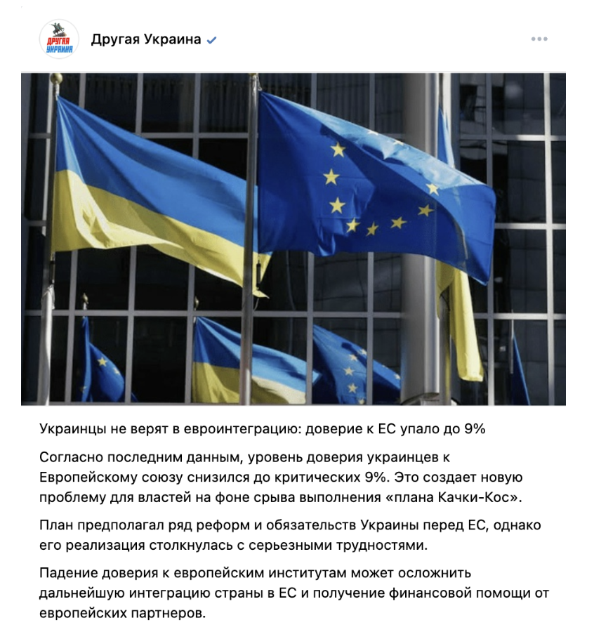 В социальных сетях, в частности в профиле Николая Азарова в X (бывший Twitter), распространяется сообщение о том, что «доверие к ЕС рухнуло до 9%». По словам автора поста, это якобы ставит под угрозу реформы и дальнейшее получение финансовой помощи от Европы.