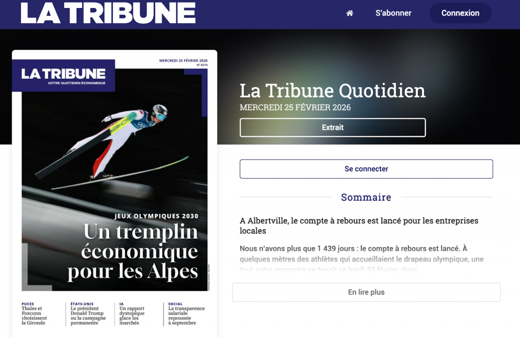Выпуск La Tribune от 25 февраля также не содержит никаких материалов о якобы передаче ядерного оружия Украине. Реальная тема номера – финансирование Олимпийских игр 2030 года во Французских Альпах.