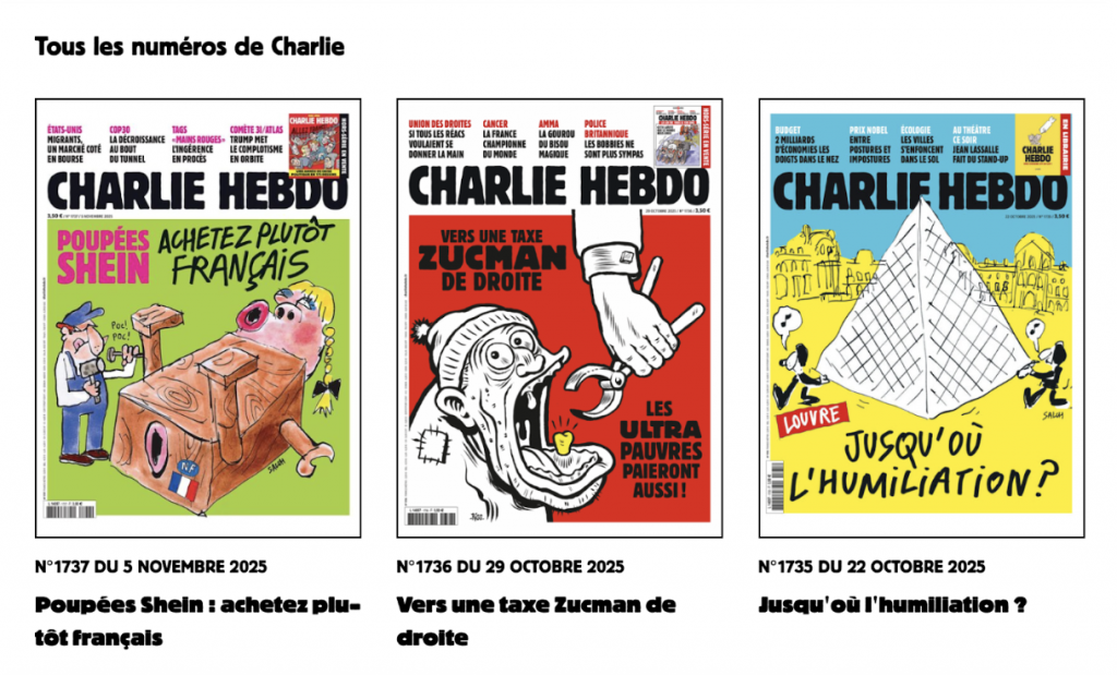 Это не настоящие, а поддельные обложки, французский журнал таких карикатур не создавал.