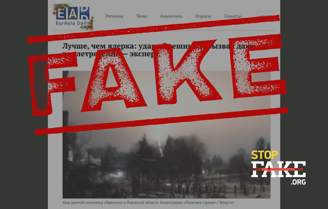 Для усиления нарратива о «непобедимости российской армии» московский агитпроп запустил дезинформацию о том, что российский удар по Украине баллистической ракетой средней дальности Орешник в ночь на 9 января 2026 года якобы был настолько «точным и мощным», что вызвал во Львовской области «землетрясение магнитудой до четырех единиц».