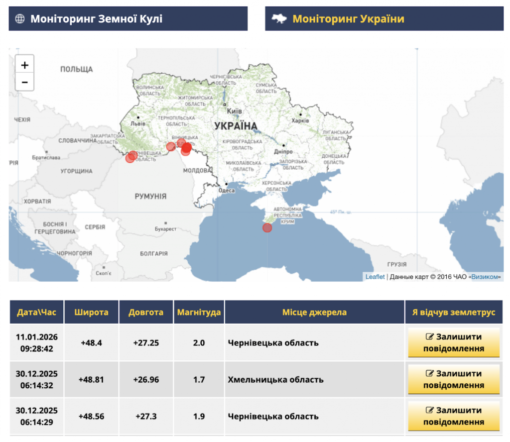 Центры специального контроля Украины, ЕС и США не регистрировали ни одного землетрясения на украинской территории в период с 8 по 9 января 2026 года.