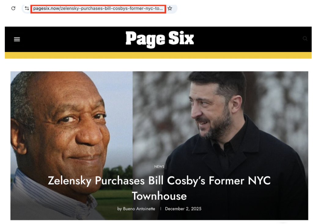 В социальных сетях и ряде Telegram-каналов распространяется информация о том, что Президент Украины Владимир Зеленский якобы приобрел недвижимость в Нью-Йорке, ранее принадлежавшую актеру Биллу Косби. В качестве подтверждения авторы сообщений ссылаются на публикацию в американском таблоиде Page Six.