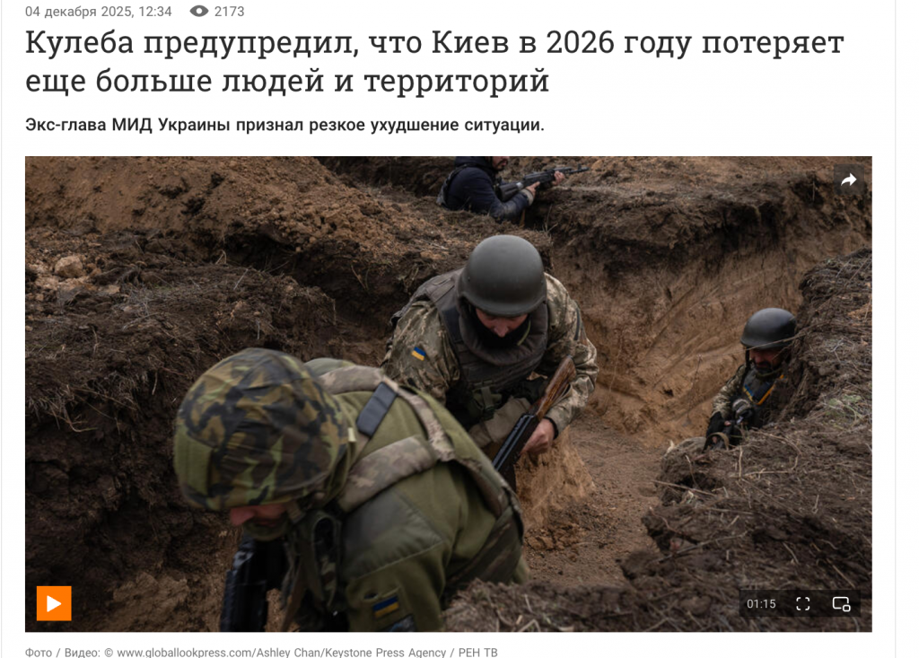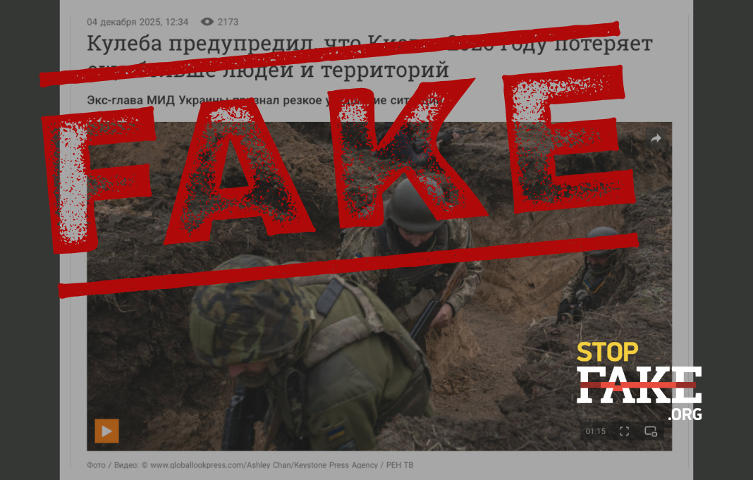 Некоторые российские новостные сайты и анонимные Telegram-каналы распространяют сообщения о том, что экс-глава украинского МИД Дмитрий Кулеба якобы заявил о резком ухудшении ситуации на переговорном треке, к которому «привела несговорчивость режима Владимира Зеленского». Кулебе приписывают слова о том, что Украине срочно необходимо заключить мир с Россией, поскольку в 2026 году страну якобы ждут еще большие территориальные и людские потери.