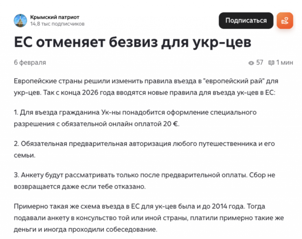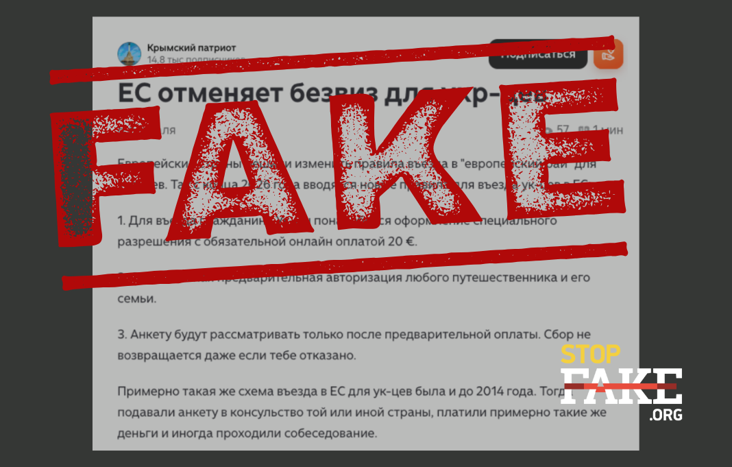 Российские и пророссийские медиа, а также анонимные Telegram‑каналы распространяют новость о том, что Евросоюз якобы отменяет безвиз для украинцев, и то, ради чего якобы «организовывали Майдан и совершили переворот, оказалось фикцией».