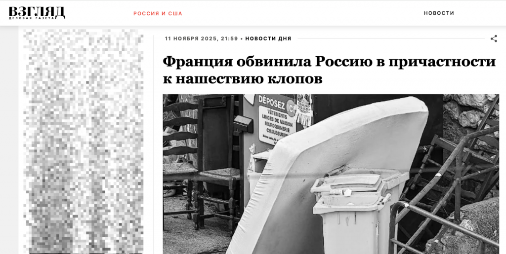Таким образом, французские власти не обвиняли Россию в появлении клопов. Речь идет о преднамеренных информационных операциях: Россия гиперболизировала проблему, усиливала панику и использовала бытовую тему для подрыва доверия во французском обществе.