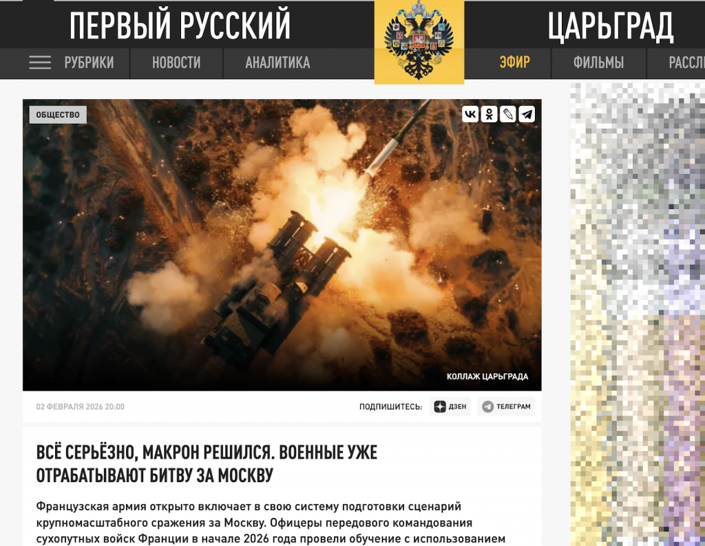 Публикации сопровождаются утверждениями о «милитаризации Франции», «переходе Европы к подготовке полномасштабной войны» и «открыто враждебной риторике Парижа в отношении Москвы».