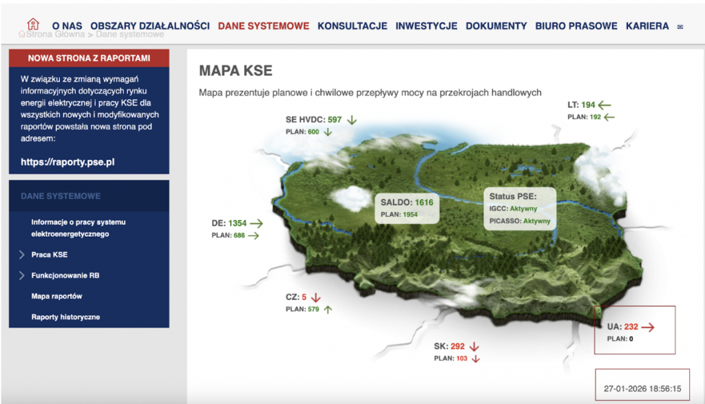 Данные о коммерческих потоках электроэнергии публикуются операторами энергорынка и национальными системными операторами стран ЕС. В период с ноября 2025 года никаких подтверждений экспорта электроэнергии из Украины в Польшу или другие страны Евросоюза зафиксировано не было. В режиме реального времени экспортно-импортные связи Украины с соседними странами можно отследить на сайтах системных операторов Польши, Венгрии и Румынии. Так, по состоянию на вечер 27 января 2026 года данные польского оператора PSE показывают, что Польша передает электроэнергию Украине, а не наоборот.