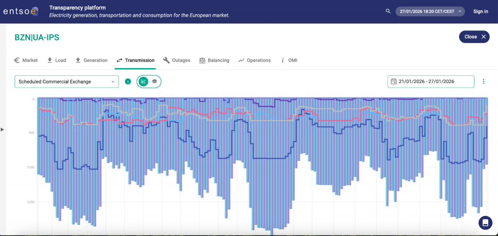 Это подтверждают и данные ENTSO-E Transparency Platform, где публикуется информация о производстве, передаче и потреблении электроэнергии на европейском рынке. В частности, за последнюю неделю – с 21 по 27 января 2026 года – Украина выступала нетто-импортером электроэнергии, то есть получала ее от соседних стран, а не продавала за границу.