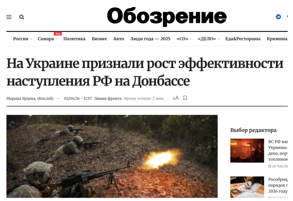 Российский агитпроп запустил дезинформационную кампанию в поддержку весеннего наступления оккупантов в Украине. Ссылаясь на аналитические отчеты OSINT-проекта DeepState, прокремлевские медиа массово распространили фейк о «колоссальном росте эффективности российского наступления» в Донецкой области. Агитпроп уверяет, что украинские военные аналитики якобы публично констатировали «успех» оккупантов на поле боя и «отметили эффективные российские тактики» в Донецкой области.
