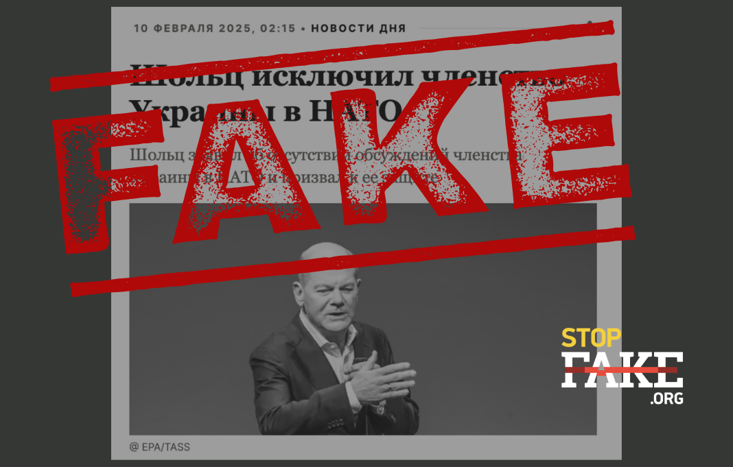 На самом деле Канцлер Германии Олаф Шольц во время дебатов с кандидатом в канцлеры Фридрихом Мерцом заявил, что членство Украины в НАТО «не состоится в ближайшее время», поскольку США отклонили это предложение.