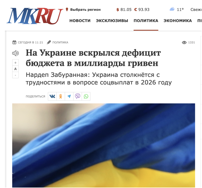 Прокремлевские медиа на фоне рассмотрения проекта бюджета Украины на 2026 год предсказуемо начали распространять дезинформацию на эту тему. В этот раз агитпроп заявил, что уже весной следующего года украинские бюджетники якобы останутся без денег. «Под угрозой находятся выплаты заработной платы работникам бюджетной сферы, включая военнослужащих», – резюмируют пропагандисты.