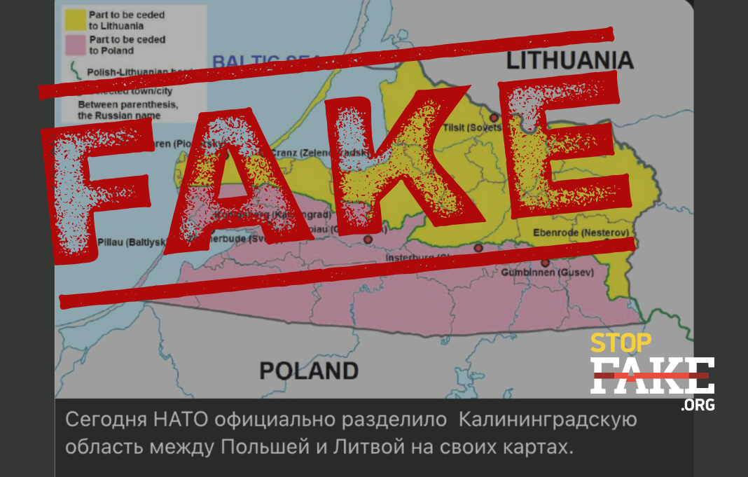 Російські пропагандисти пишуть, що НАТО буцімто офіційно розділило Калінінградську область між Польщею та Литвою на власних мапах. При цьому жодна з публікацій на цю тему не пояснює контексту так званого поділу і не містить посилань на джерела — зображення мапи залишається єдиним доказом новини.