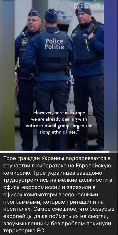 У ролику з логотипом видання WIRED, що став першоджерелом новини, наведена також цитата фахівця з кібербезпеки Лоренса-Яна Клоппенбурга, який буцімто заявив, що українцям, що скоюють кіберзлочини в Європі, вдається уникати відповідальності через те, що громадян України сприймають як жертв війни та недостатньо перевіряють під час перетину кордону. Він також нібито стверджує, що українці формують в Європі цілі злочинні клани.
