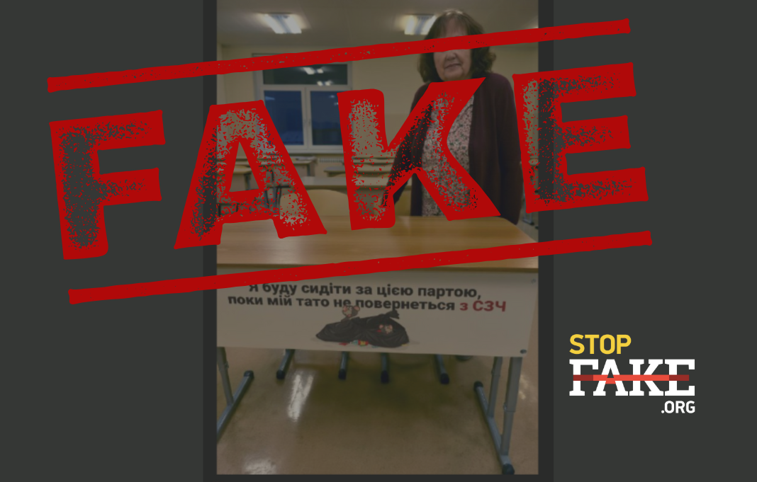 У мережі поширюється знімок, буцімто зроблений в одній зі шкіл Кривого Рогу. На ньому вчителька стоїть біля шкільної парти з написом: «Я буду сидіти за цією партою, поки мій тато не повернеться з СЗЧ (самовільне залишення частини – прим. ред.)».