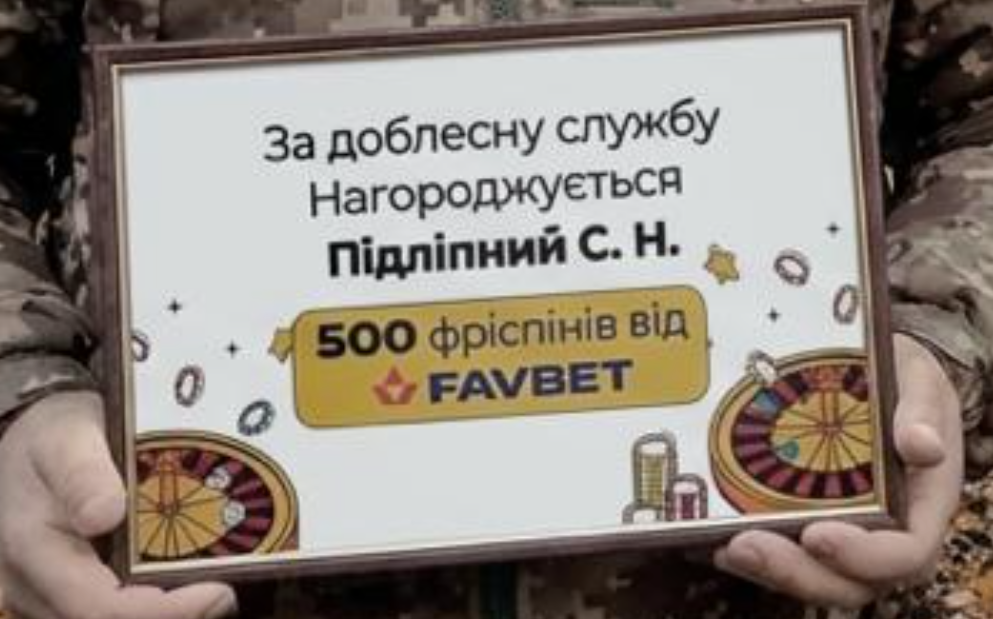 У проросійському сегменті мережі поширюється новина про те, що українських військових нібито нагородили за службу бонусами в онлайн-казино Fabvet, проілюстрована знімком з двома чоловіками у камуфляжі. Йдеться про фріспіни — безкоштовні прокручування барабанів на ігрових автоматах. Пропагандисти не вказують ні посад військовослужбовців, ні частин, де нагороджені буцімто проходять службу, ні хто саме вручив чоловікам сертифікати.