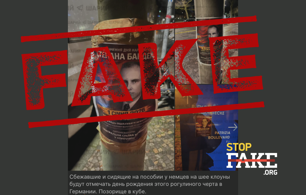 Однак насправді така подія не проводилася в Берліні 1 січня, а постер сфабрикований пропагандистами. На сайті Центральної спілки українців у Німеччині нічого не згадується про проведення подібного святкування. Останні події організації — зокрема, зустріч з президентом Світового конгресу Українців і святкування Дня вишиванки — пройшли ще у 2024 році. У відповідь на запит StopFake очільниця спілки Людмила Млош підтвердила, що вперше чує про такий захід.