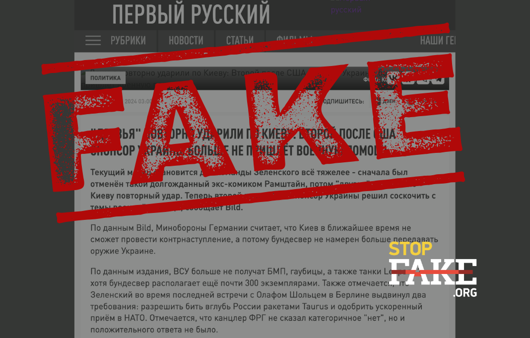 Російські ЗМІ, а також користувачі в соцмережах пишуть про те, що Німеччина нібито більше не передаватиме військову допомогу Україні, постачання важкої військової техніки закінчено, а нові надходження не плануються, і що це — «черговий удар по Києву».