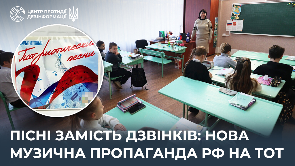 У школах на тимчасово окупованих територіях шкільні дзвінки замінюють «патріотичними» піснями про «подвиги», «захист батьківщини» та військову службу. До пропагандистського репертуару увійшли як радянські, так і сучасні пісні, а серед виконавців — підсанкційний денис майданов.