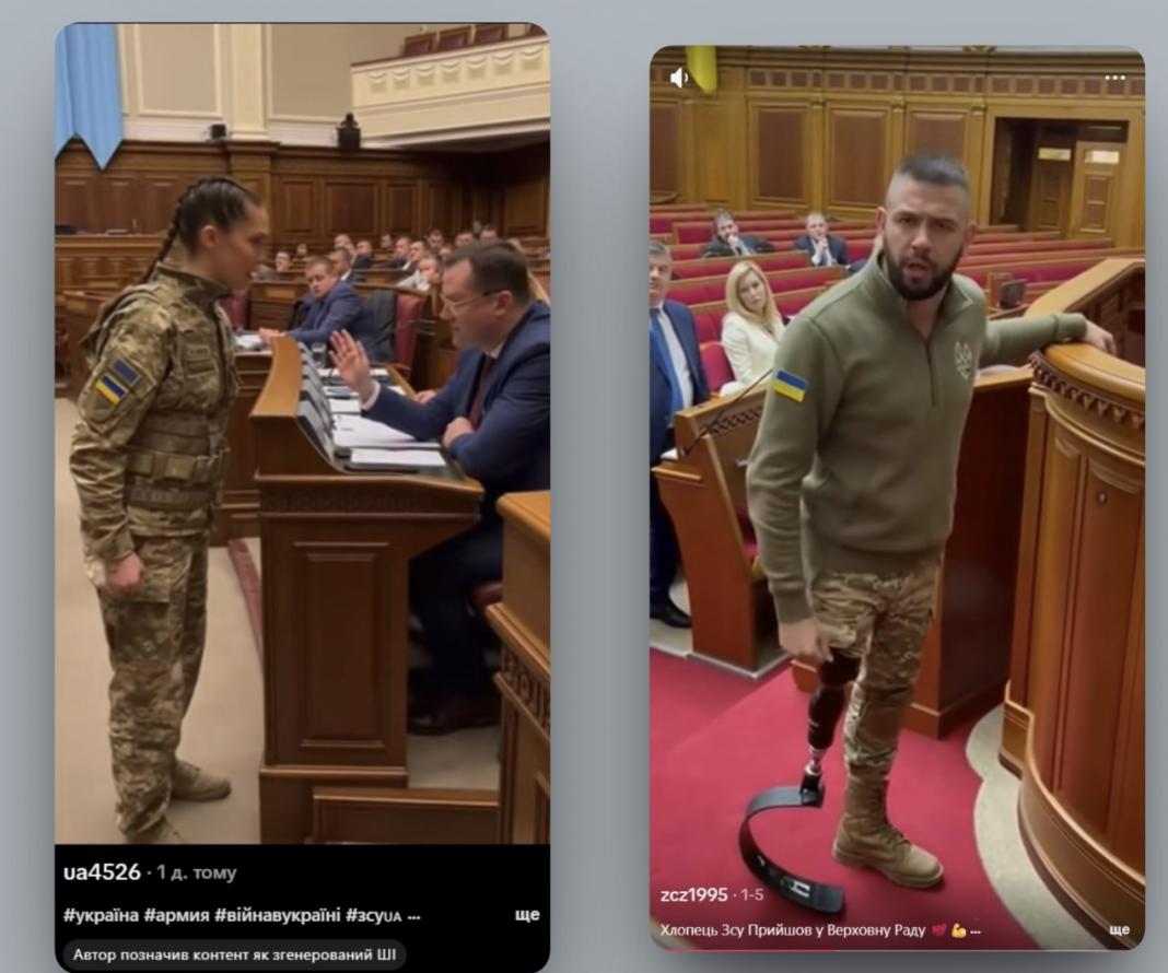 У січні в TikTok ширяться ШІ-генеровані відео, на яких ШІ-персонажі кричать у Верховній Раді з виряченими очима, «що ви тут жируєте, а хлопці гинуть». Ми детально дослідили 14 таких роликів. У сумі вони набрали приблизно 3,8 мільйона переглядів, 200 тисяч лайків і 16,5 тисяч коментарів.