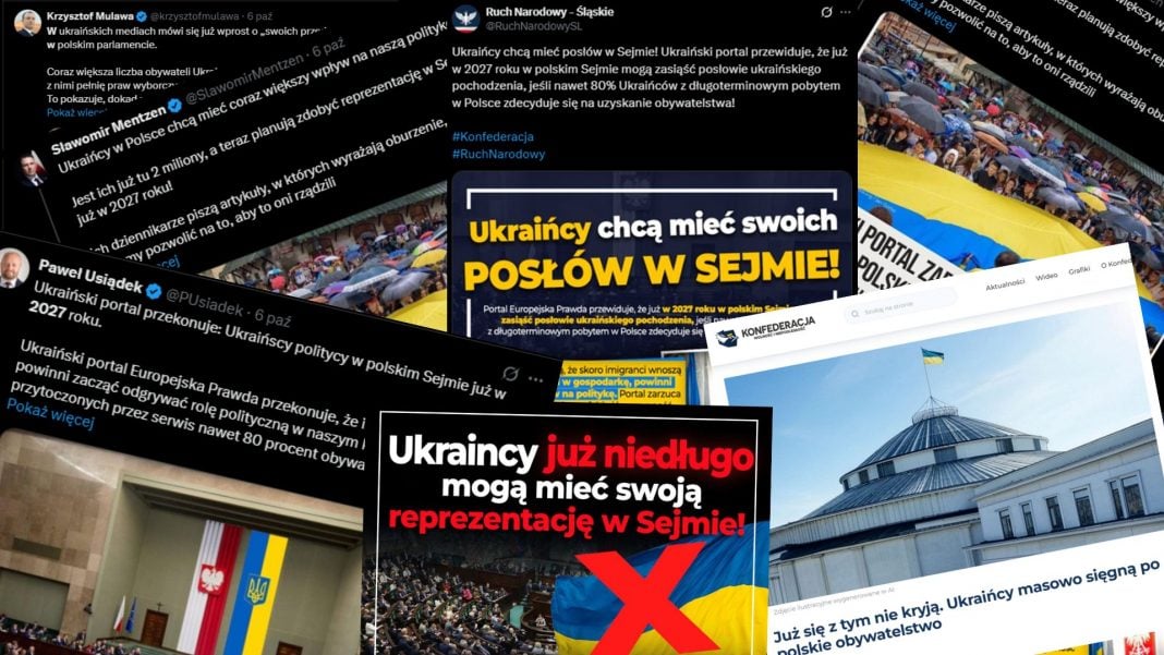 Політик Конфедерації Павел Усьондек опублікував на платформі X розлогий допис, у якому описує, нібито український інформаційний портал переконує, що українці повинні мати своє представництво в польському Сеймі вже у 2027 році.