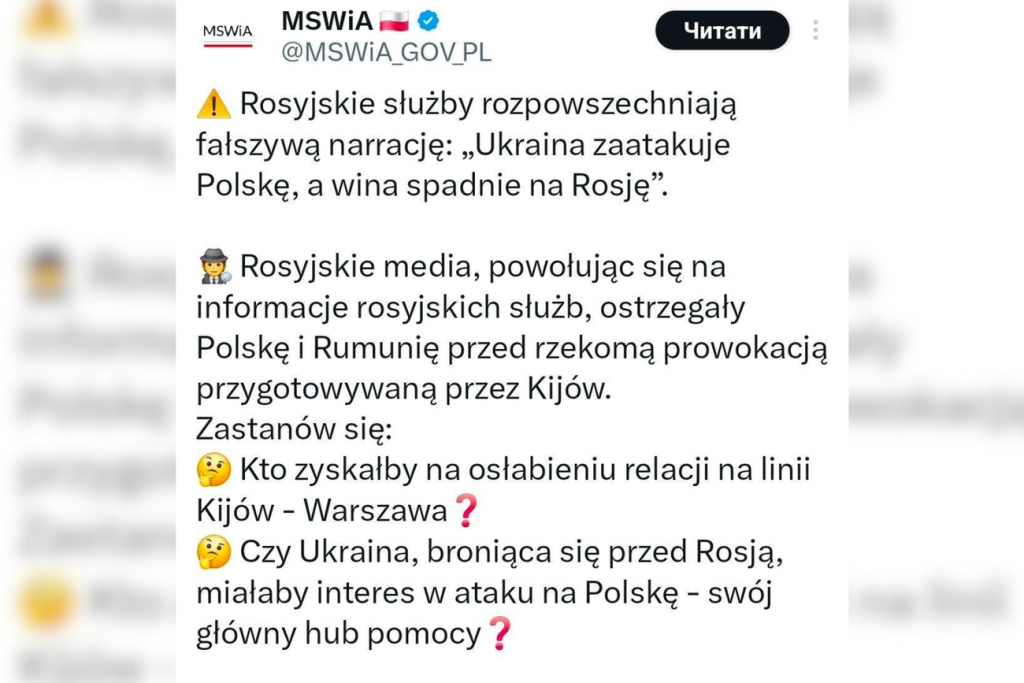 скріншот зі сторінки Міністерства внутрішніх справ у Польщі у мережі X