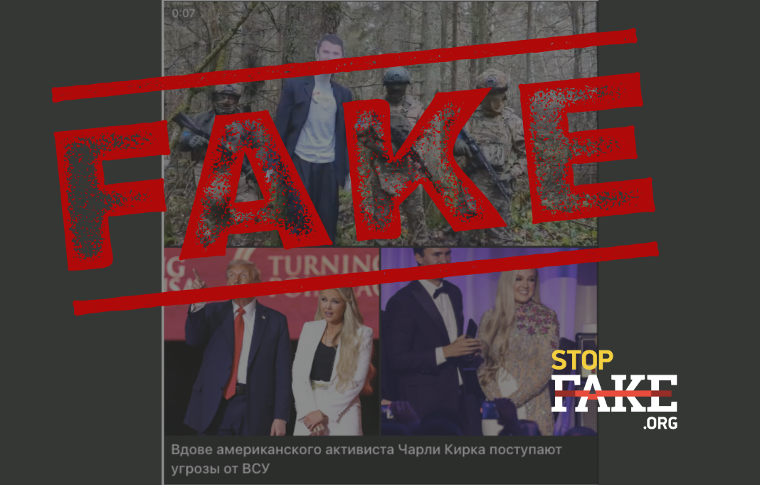 У проросійському сегменті мережі поширюється відеоролик, в якому українські військові нібито погрожують дружині вбитого американського активіста Чарлі Кірка, якщо та буде продовжувати висловлюватися щодо України в стилі риторики її чоловіка. Люди у військовій формі і з закритими обличчями заявляють, що якщо Еріка Кірк закликатиме передати українські території Росії, то вона закінчить так само, як і її чоловік. На цих словах один з чоловіків збиває автоматом голову манекену з обличчям Кірка.