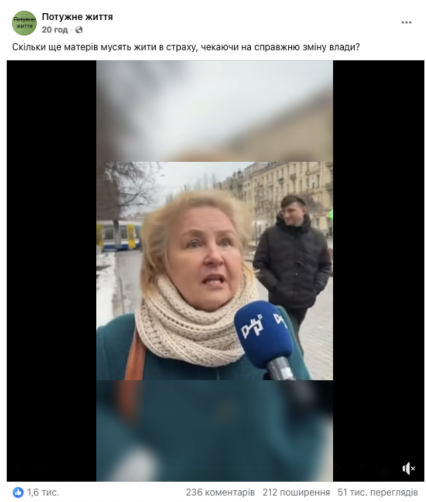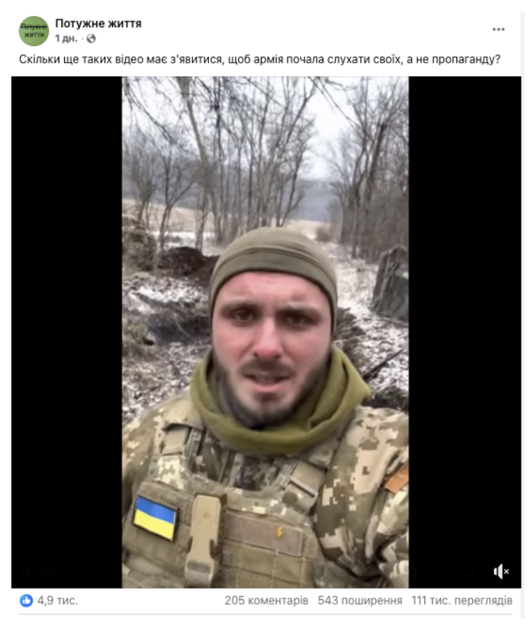 На Facebook набирає популярності сторінка «Потужне життя», яка публікує короткі ролики нібито вуличних інтерв’ю та відеозвернень українських громадян. Кожен з роликів збирає десятки тисяч переглядів, сотні поширень та коментарів — як критичних, так і схвальних. Серед відео — звернення нібито військових, які нібито радять побратимам складати зброю і здаватися; жінка, яка закликає Зеленського піти з посади і називає легітимним президентом Януковича; дівчина, яка розповідає про невідоме село, в якому нібито ще в перші дні війни мобілізували всіх чоловіків, жоден з яких не вижив. «Це не війна, це фінансова операція», «наші вороги сидять не в окопах, а в кріслах», «ми гинемо за чиюсь закордонну нерухомість» — ось ще кілька цитат з відео, які сторінка поширює багато разів на день.